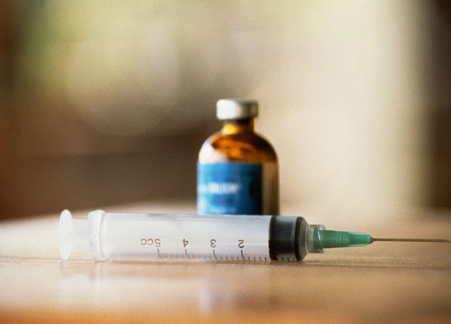 เข็มฉีดยาและขวดใส่ยาพิษที่ถูกเก็บมาเป็นหลักฐาน