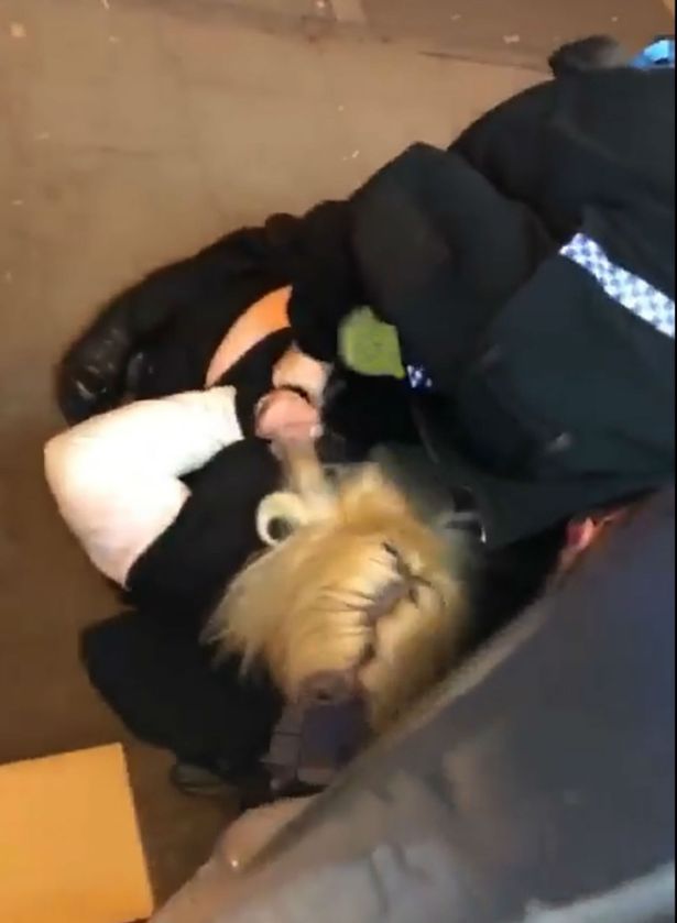 นายตำรวจดูไม่สบอารมณ์ แต่ก็ยังคงต้องจับกุมตัวเธอไป โดยในขณะที่เขากำลังพยายามจับกุมนั้น หญิงสาวก็ล้มลงไปกับพื้น นายตำรวจจึงดึงแขนขวาของเธอมาล็อกไว้ด้านหลังเพื่อใส่กุญแจมือ โดยแม่สาวคนดังกล่าวก็ยังตะโกนต่ออีกว่า “โอ้ว ใช่เลยจ้ะ ที่รักกกก”
