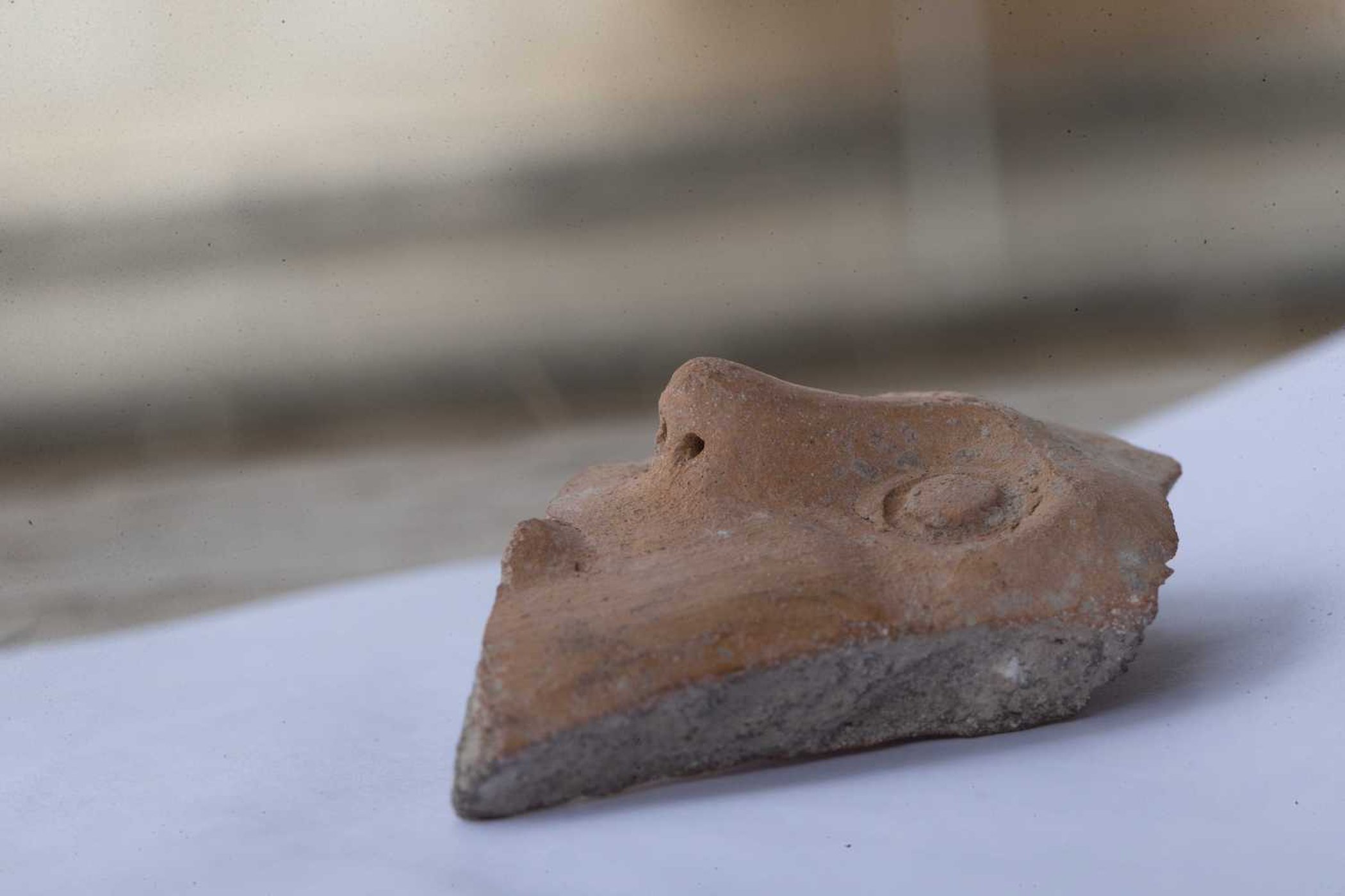 โดยเศษเครื่องปั้นดินเผาที่มีการพบในครั้งนี้มีจุดเด่นอยู่การตกแต่งเป็นรูปของเทพเบส (Bes) เทพที่มีลักษณะเด่นอยู่ที่ขนาดตัวที่เล็กคล้ายคนแคระ สวมหมวกรูปขนนกกระจอกเทศ และมีใบหน้าที่แปลกประหลาดที่มักแลบลิ้นราวกับล้อเลียนอะไรบางอย่างอยู่