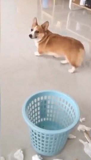 เจ้าหมาคอร์กี้ที่ว่าเป็นสัตว์เลี้ยงของชายชาวจีนจากเมืองจงชาน มณฑลกวงตง มันทำความผิดโดยการมาคุ้ยถังขยะในบ้านจนเลอะเทอะแล้วหนีไปหน้าตาเฉย…