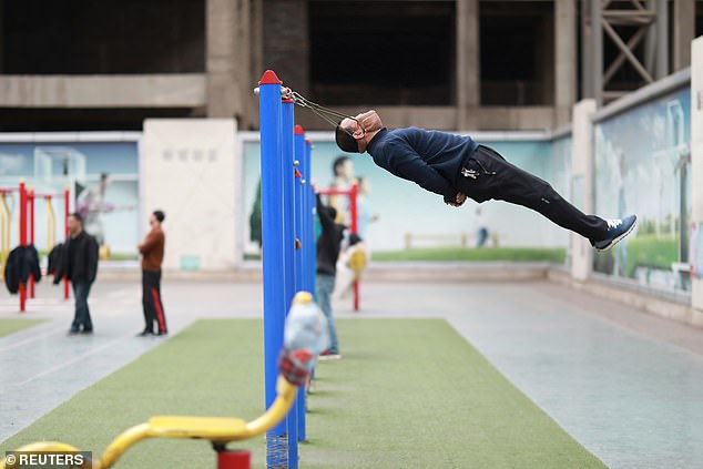 วิธีการดังกล่าวนั้นคือเทรนด์การกายบริหารที่กำลังมาแรงสำหรับผู้สูงอายุในประเทศจีน เมื่อพวกเขานิยมเอาสายรัดยึดคานเหล็กกับคางและคอเอาไว้ ก่อนที่จะปล่อยตัวให้ห้อยโตงเตงโดย หรืออาจมีท่าทางประกอบนิดๆ หน่อยๆ