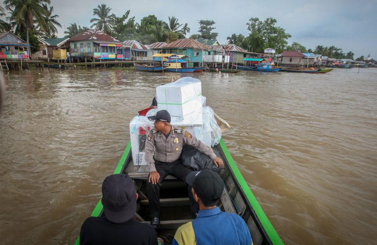 และนำอุปกรณ์เลือกตั้งไปส่งยังหมู่บ้านที่อยู่บนเกาะห่างไกล