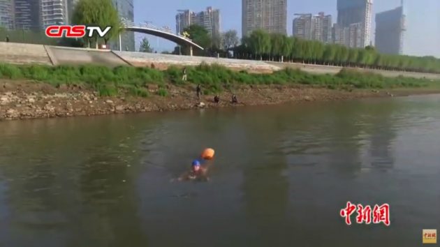 นาย Zhu Biwu วัย 53 ปีอาศัยอยู่ที่เมืองอู่ฮั่น มณฑลหูเป่ย และเลือกใช้วิธีการว่ายน้ำไปที่ทำงาน ซึ่งวิธีนี้มันช่วยให้เขาประหยัดเวลามากกว่าวิธีการเดินทางแบบทั่วๆ ไปอย่างน้อย 30 นาที