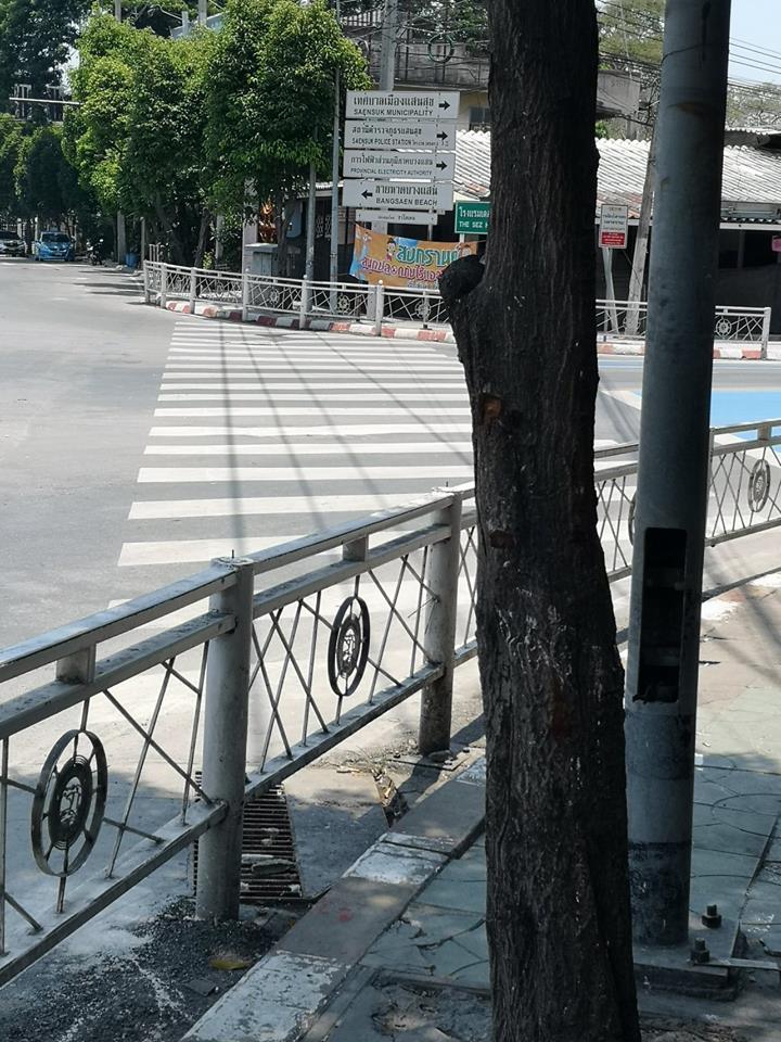 แคปชั่นแปลได้ว่า “ทางเท้าเดินข้ามถนนของไทย ตำแหน่ง ถนนลงหาดบางแสน ชลบุรี”