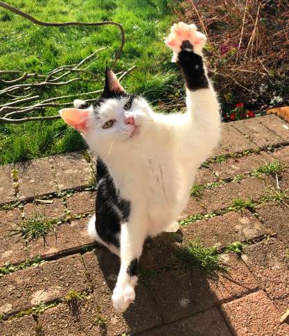 แมวเหมียวสีขาวดำตัวนี้ไม่เคยเดียวดายเลย เพราะถึงมันจะออกไปเล่นข้างนอกตัวเดียว แต่มันก็จะเอาของเล่นติดตัวไปเป็นเพื่อนด้วยเสมอ…
