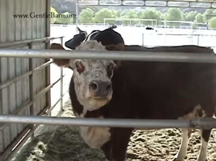แม่วัวชื่อ Karma เคยอยู่ในสภาพที่คนดูแลไม่ให้น้ำ อาหาร หรือที่กำบังกับพวกมันมาก่อน มันจึงถูกช่วยมาอยู่ในฟาร์ม The Gentle Barn