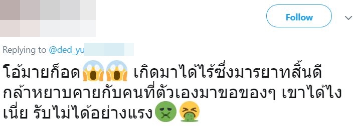 โหว ไม่เคยอึ้งขนาดนี้มาก่อน นอกจากยอมรับว่าตัวเองไม่มีดวงเเล้ว ยังอาจจะยอมรับด้วยว่าไม่มีมารยาทเเถมหยาบคายมากก pic.twitter.com/wluHio5Ec4