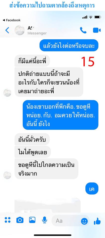 เมื่อเจ้าของเฟซบุ๊กได้ฟังความจากนางแบบที่เป็นน้องสาวของตัวเองแล้ว ต่อมาเขาก็ได้ติดต่อไปพูดคุยเพื่อฟังความจากทางฝั่งช่างภาพวัย 18 ปีบ้าง