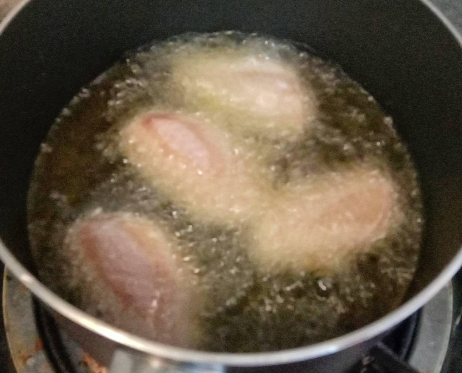 3. ตั้งกระทะใส่น้ำมันสำหรับทอดให้ท่วมปีกไก่