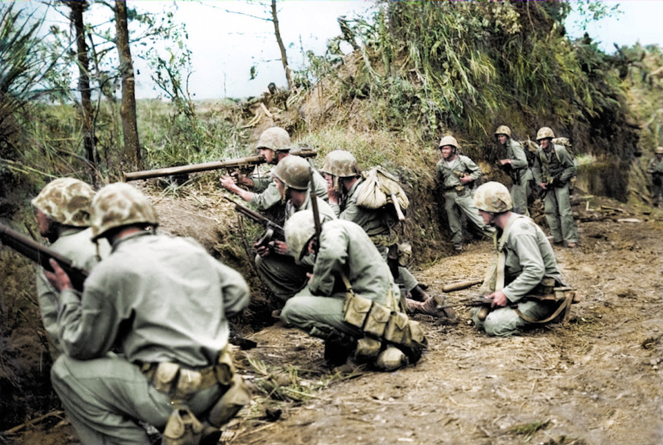 ทหารสหรัฐฯ หลังกลับจากการรบนาน 12 วันที่โอกินาว่า 2 มิถุนายน 1945