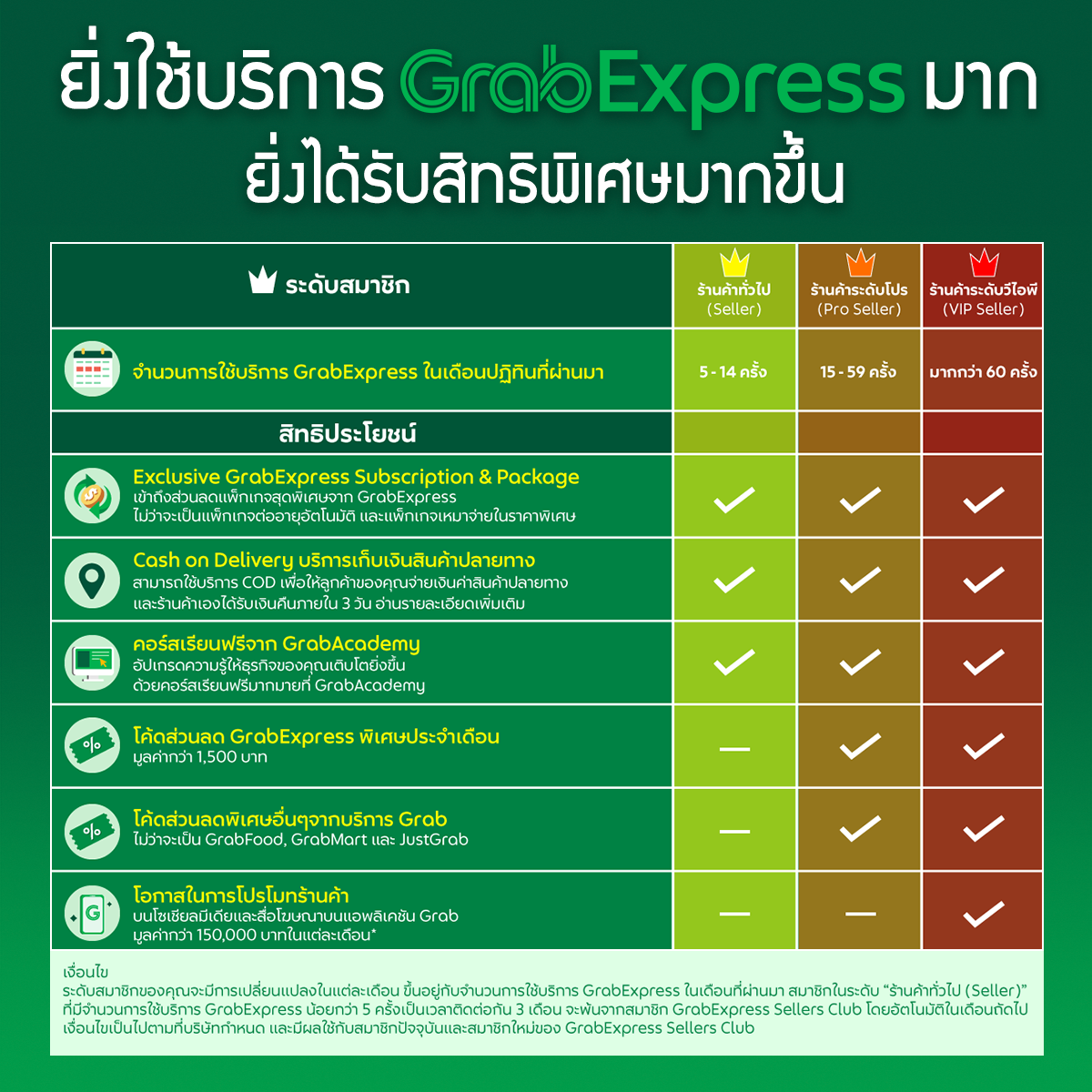 ระดับสมาชิก “VIP Seller” (ใช้บริการ GrabExpress มากกว่า 60 ครั้งในเดือนปฏิทินที่ผ่านมา)