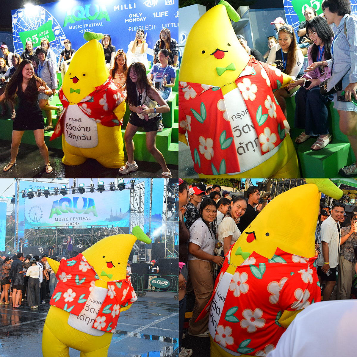 งานนี้น้องกล้วยไปเซอร์ไพรส์สร้างสีสันตามที่ต่าง ๆ Random Dance กลางสยาม, ป่วนงาน Aqua Music Festival รถแห่ทั่วกรุงเทพ และแน่นอน สาขาธนาคารกรุงศรี ก็ต้องมีแวะไปหา