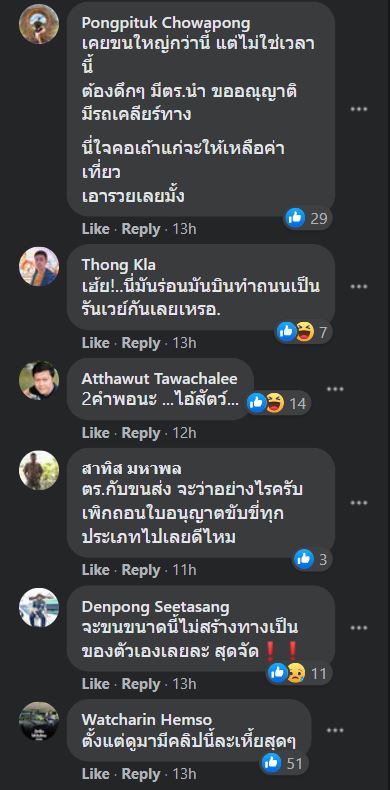 ซึ่งการกระทำดังกล่าว ก็ทำให้มีชาวเน็ตเข้ามาแสดงความคิดเห็นมากมาย ระบุว่าการขนย้ายแบบนี้ทำได้ แต่ต้องขออนุญาต ต้องปิดการจราจร ต้องมีรถนำขบวนและปิดท้ายขบวน และส่วนมากจะทำกันเวลากลางคืนที่มีรถน้อย