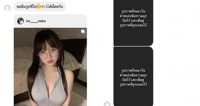แต่พ่อหนุ่มคนนั้นยังไม่หยุดความพยายามนะ เพราะหลังจากนั้นเขาก็ได้ส่งรูปที่ถูกทางอินสตาแกรมเบลอเอาไว้ ทำเอา Neko ไม่กล้าเปิดดูเลยล่ะ