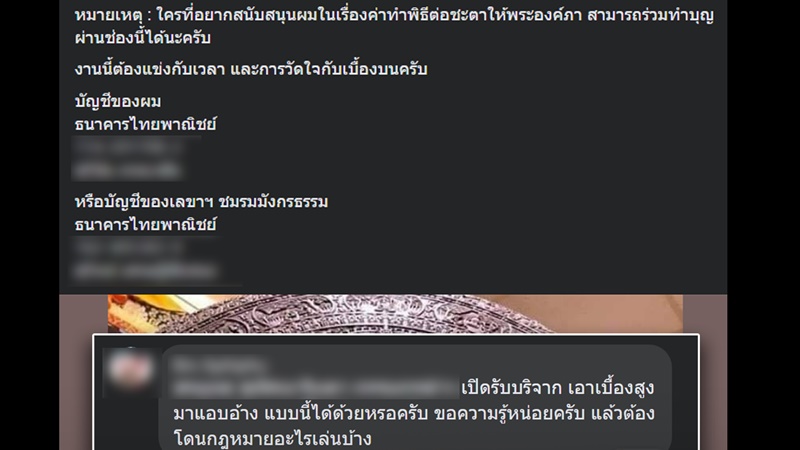 “เปิดรับบริจาค เอาเบื้องสูงมาแอบอ้าง แบบนี้ได้ด้วยเหรอครับ ขอความรู้หน่อยครับ แล้วต้องโดนกฎหมายอะไรเล่นบ้าง”