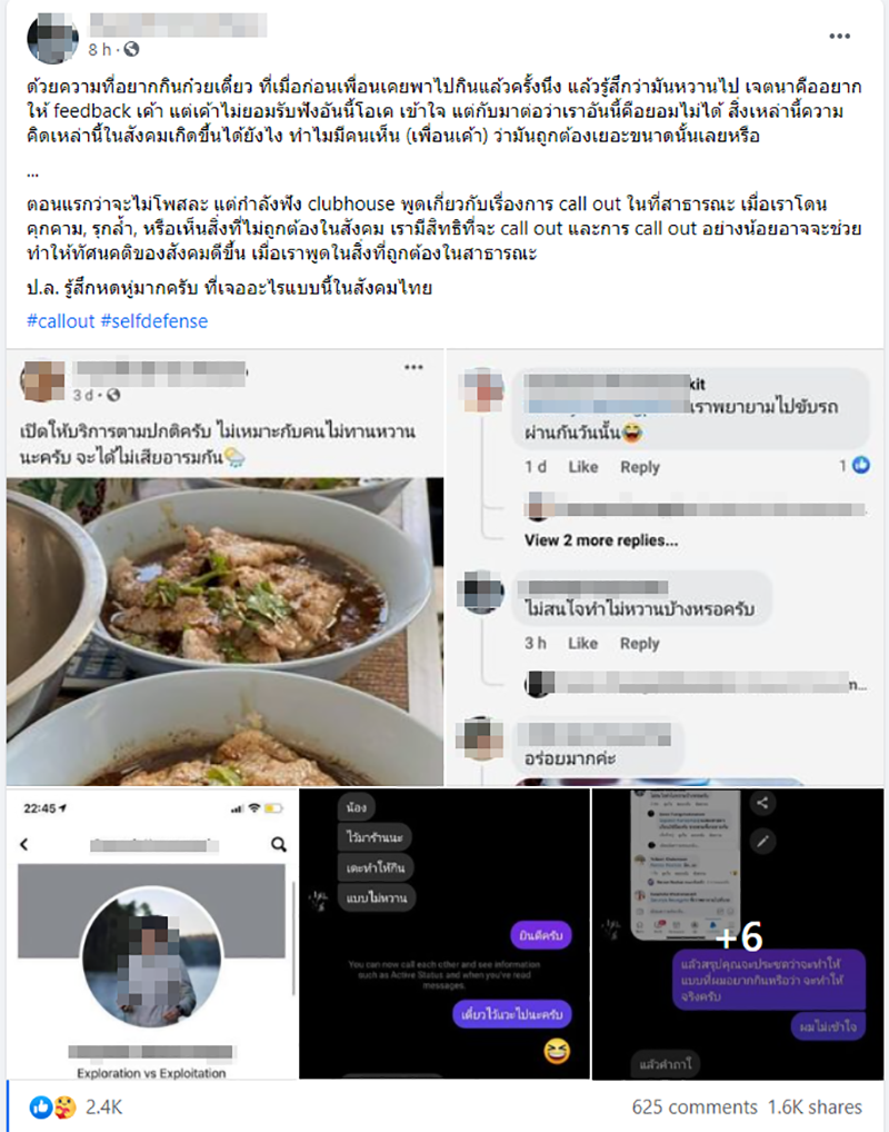 ซึ่งพอเหตุการณ์เป็นแบบนี้ ทางลูกค้าคนดังกล่าวก็เลยนำเรื่องทั้งหมด มาโพสต์ลงเฟซบุ๊กส่วนตัวของเขาทันที เนื่องจากตนเองมองว่าร้านก๋วยเตี๋ยวทำไม่ถูกต้อง และรุกล้ำความเป็นส่วนตัวของเขาเอง