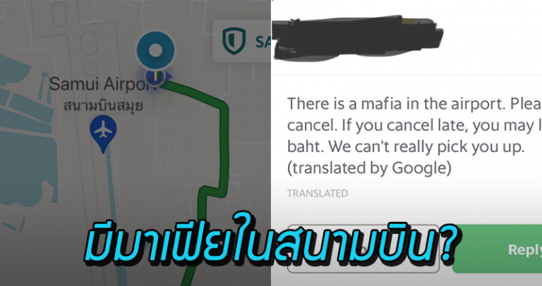 แอคเคาท์ทวิตเตอร์ @justindunne ร้องเรียนว่าตนเองบินมาเกาะสมุย และใช้งานแอปพลิเคชันเรียกรถมารับ แต่ถูกบังคับให้ต้องกดยกเลิก ด้วยเหตุผลที่ว่า “มีมาเฟียในสนามบิน”