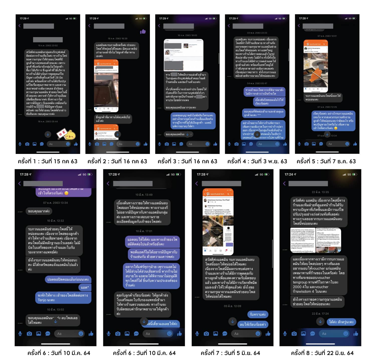 โดยระบุว่าทางร้านได้ทักมา 8 ครั้ง