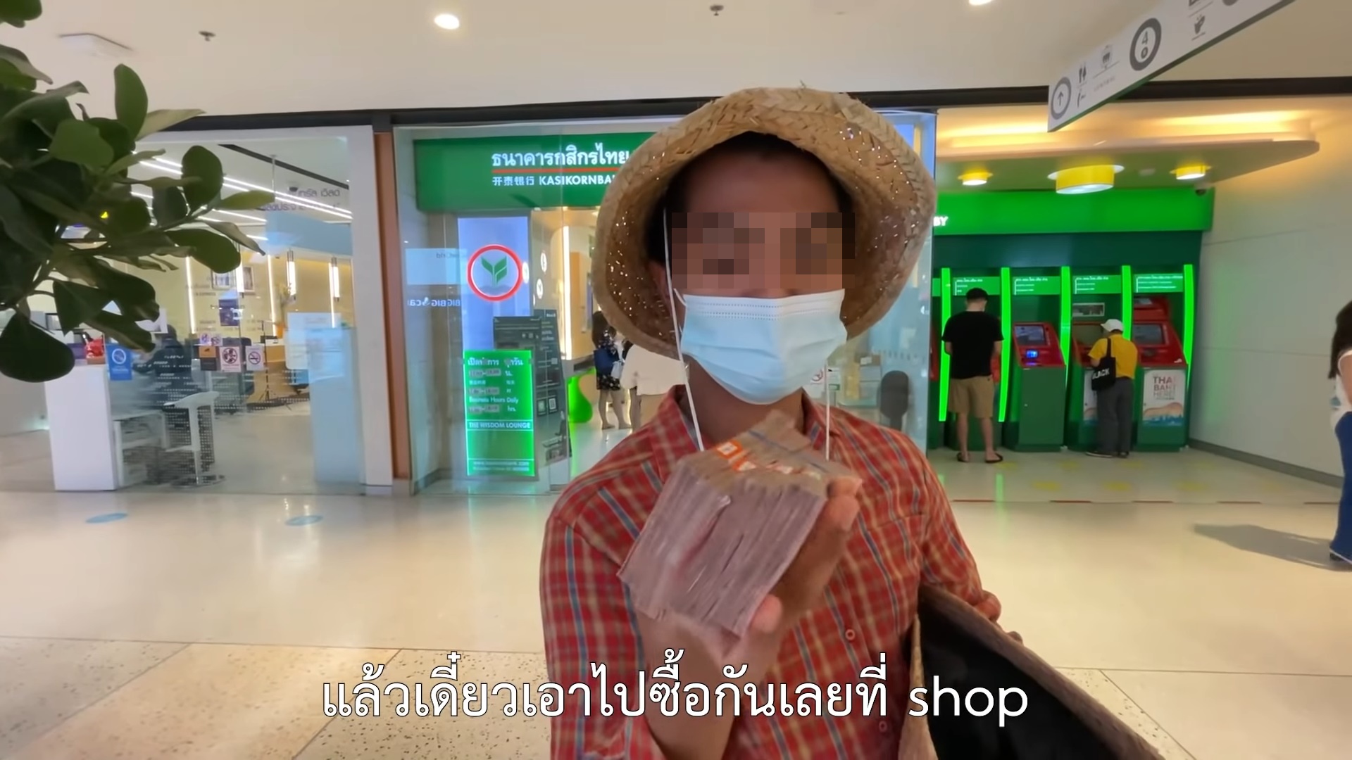 โดยตอนเริ่มคลิป ยูทูบเบอร์ท่านนี้ได้เดินไปถอนเงินสดจากธนาคาร ก่อนจะเดินเข้าช็อป AIS และถอย iPhone 13 Pro Max ในราคา 50,900 บาทมาครอง
