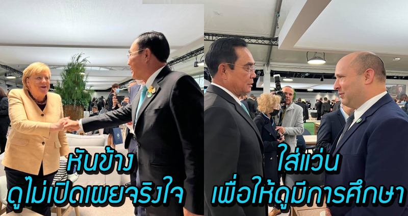 ส่วนภาพที่พบกับ นายนาฟตาลี เบนเน็ตต์ นายกรัฐมนตรีอิสราเอล พล.อ.ประยุทธ์ มีการใส่แว่น ซึ่งมีการวิเคราะห์ว่า อาจจะทำให้ดูมีภาพลักษณ์ของผู้มีการศึกษา