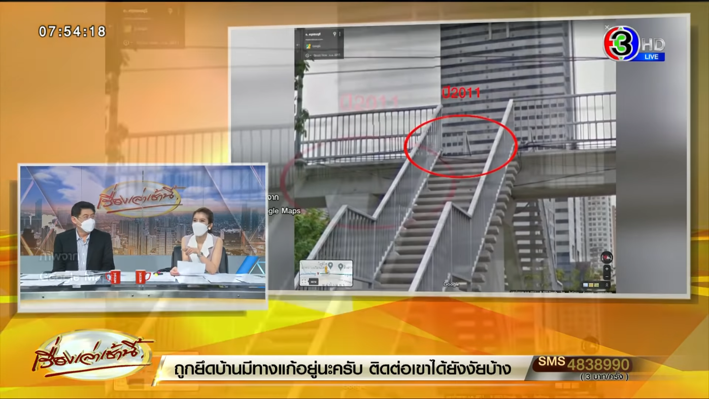 ทีมงานข่าวพบว่ามีสายสื่อสารพาดขวางทางลงบันไดสะพานลอยจริง และยังไม่มีหน่วยงานใดเข้าไปดูแล ทำให้คนใช้สะพานลอยต้องยกเท้าข้ามสายอย่างระมัดระวังเพราะอาจจะสะดุดตกบันไดได้