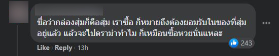 ซึ่งก็เสียงแตก มีทั้งฝ่ายที่เข้าใจบุคคลต้นเรื่อง กับฝ่ายที่มองว่าในเมื่อซื้อกล่องสุ่มก็ต้องรับความเสี่ยงได้