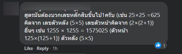 ตัวหน้าต้องเอามาบวกเพิ่ม 1 ก่อนจะคูณ เช่น 25 คูณ 25