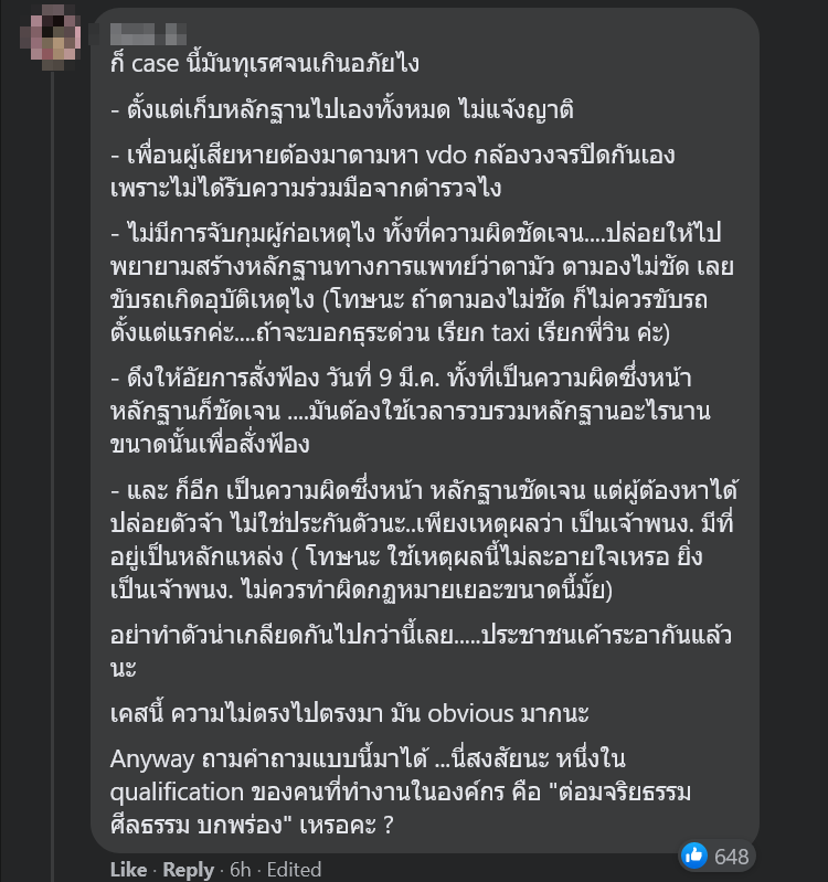 “รบกวนฝาก ฝอ.5 ถามสื่อมวลชน ประเด็นว่าเหตุใดสังคมสมัยนั้น เสี่ยขับรถเบนซ์เมาชนตำรวจตายยังบวชได้ สังคมไม่ว่าอะไร พอตำรวจที่ไม่ได้เมาจะบวชบ้างสังคมกับไม่ยอม มันมีสาเหตุจากอะไรครับ ? ขอบคุณครับ”