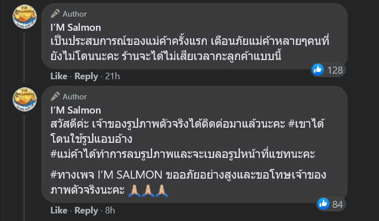ทั้งนี้ทางร้านระบุว่าเป็นครั้งแรกที่เจอกับเหตุการณ์แบบนี้ ที่ออกมาโพสต์เตือนก็เพราะไม่อยากให้แม่ค้ารายอื่นๆ เสียเวลากับลูกค้าประเภทนี้อีก นอกจากนั้นแล้วลูกค้าคนนี้ก็แอบอ้างนำรูปภาพคนอื่นมาใช้ด้วยจึงต้องทำการเบลอหน้าลูกค้าออกไป