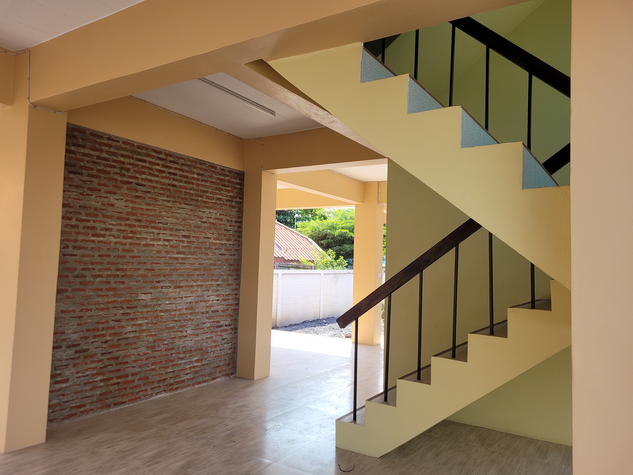 ภายนอกของตัวอาคารใช้สีโทนน้ำตาล ดูโล่งและสบายตาดีจริงๆ แตกต่างจากภาพของบ้านพักครูในสมัยก่อนที่มักจะเป็นบ้านไม้เก่าๆ และครูหลายคนต้องอยู่รวมกันในบ้านหลังเดียวกัน