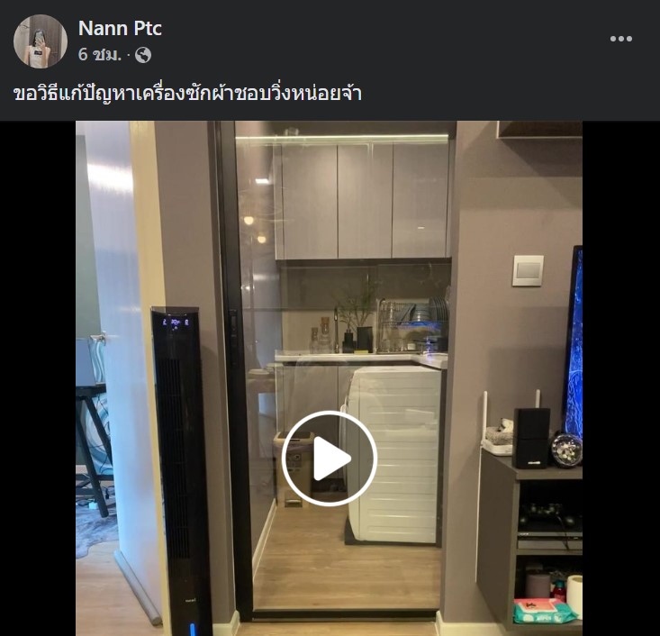 คลิปวิดีโอนี้ถูกโพสต์โดยผู้ใช้เฟซบุ๊ก Nann Ptc โดยเธอบอกในแคปชั่นว่า “ขอวิธีแก้ปัญหาเครื่องซักผ้าชอบวิ่งหน่อยจ้า”