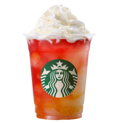 สตาร์บัคส์จึงนำไอเดียตรงนี้มาทำเป็นเมนูพิเศษ ผสมทั้งกล้วย แอปเปิ้ล พีช ส้ม มะม่วงและเสาวรสเข้าไป ปั่นรวมกันตบท้ายด้วยวิปครีมกับซอสมะม่วงและซอสช็อคโกแลต