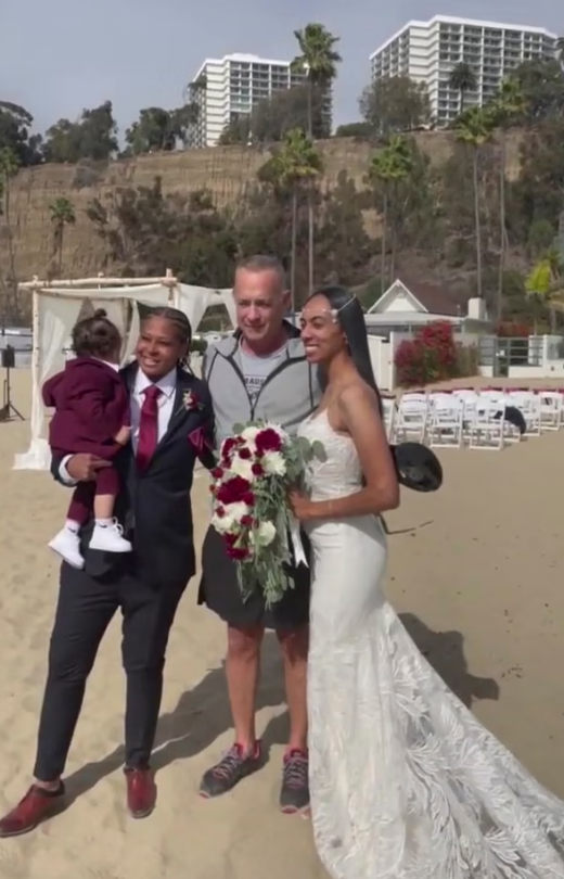 ในช่วงสุดสัปดาห์ที่ผ่านมา ขณะที่ Tom Hanks ไปพักผ่อนที่ชายหาดซานตาโมนิกา เขาบังเอิญเห็นว่ามีการจัดงานแต่ง จึงได้เข้าไปทักทาย และได้พูดบางอย่างที่ทำให้เขารู้สึกอาย