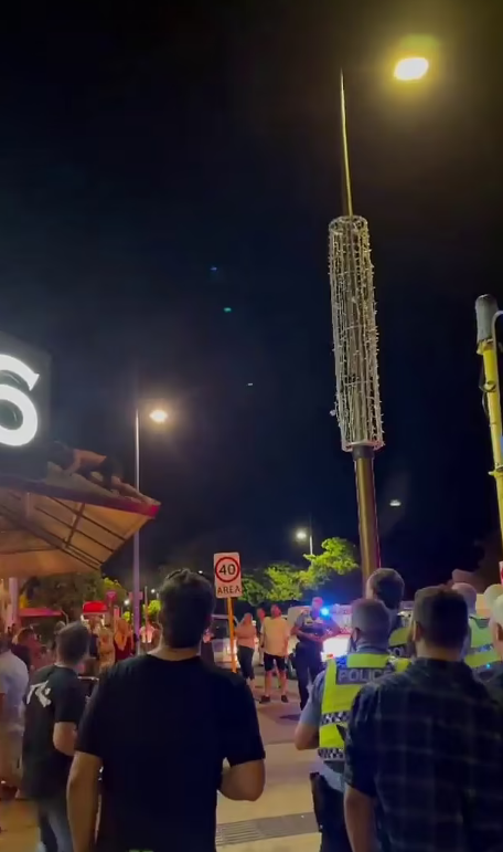 เมื่อเร็วๆ นี้ บนถนน Kent ในย่าน Rockingham เมืองเพิร์ท ประเทศออสเตรเลีย ผู้คนรวมไปถึงเจ้าหน้าที่ตำรวจ พากันมุงดูชายคลั่งคนหนึ่ง ที่ปีนขึ้นเสาไฟแต่งถนน ความสูง 10 เมตร