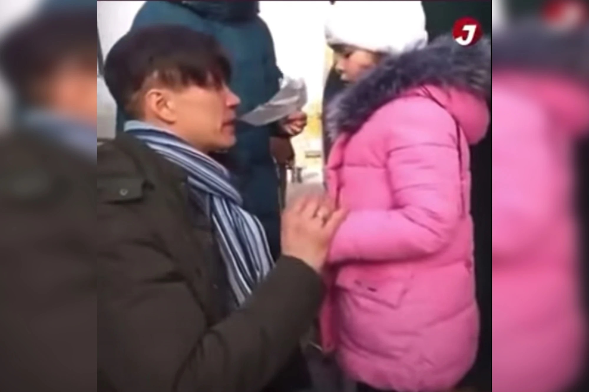 ในคลิปดังกล่าวคุณพ่อชาวยูเครนรายนี้คอยปลอบและคอยจัดหมวกไหมพรมให้ลูกสาว ก่อนที่เขาจะโน้มตัวลงมาเพื่อจูบส่งลาลูกสาวโดยไม่รู้ว่าจะเป็นครั้งสุดท้ายหรือไม่