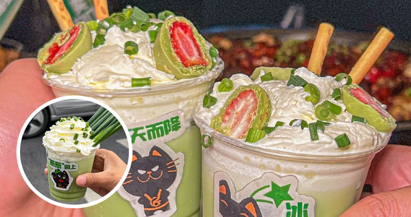 ทางร้านบอกว่า ชาต้นหอมนี้อุดมไปด้วยกลิ่นหอมของหัวหอม มีรสหวานอ่อนๆ ผสานกับความอร่อยของมัทฉะ และเติมท็อปปิ้งด้วยครีมนมสด ก่อนจะโรยหน้าด้วยต้นหอมซอย