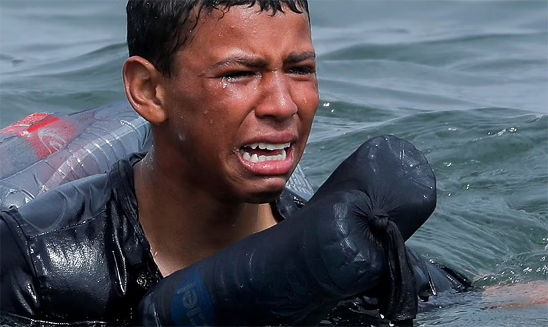 และภาพที่กลายเป็นไวรัลล่าสุด ก็คือคลิปของหนุ่มน้อยชาวโมร็อกโก ที่ใช้ขวดพลาสติกพยุงตัวเอง เพื่อให้ช่วยลอยน้ำได้ และว่ายข้ามมายังสเปน เพื่อหวังไปใช้ชีวิตต่อในยุโรป