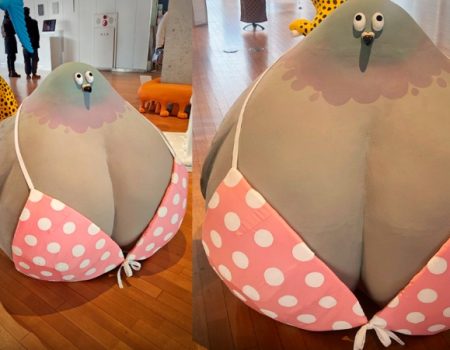 ผลงานนี้มีรชื่อว่า Deka Chichi Bato หรือแปลเป็นไทยว่า “นกพิราบหน้าอกโต!!”