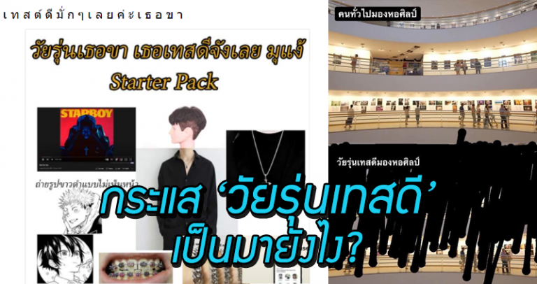 – เรื่องเริ่มจากได้มีเพจเฟซบุ๊กหนึ่ง ทำมีม ‘Starter Pack’ ขึ้นมาล้อเลียนบุคคลที่พวกเขาเรียกว่า ‘วัยรุ่นเทสดี’ หรือ ‘วัยรุ่นคุณเธอ’