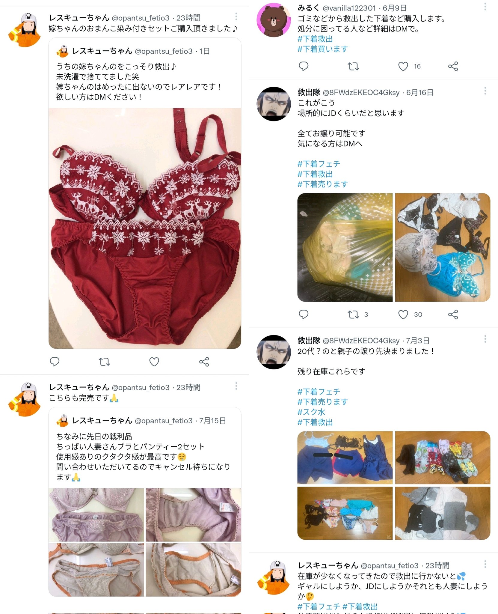 ลักษณะของคนกลุ่มนี้คือ พวกเขาจะไปหาเก็บชุดชั้นในเก่าที่ถูกทิ้งตามที่ทิ้งขยะ จากนั้นก็เอามารีเซลให้คนที่ต้องการ ด้วยการโพสต์ลงบนทวิตเตอร์ ใครที่สนใจจะซื้อก็ต้องส่งข้อความ DM ไปหา